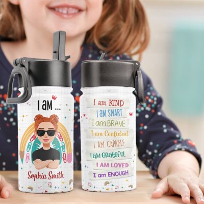 Smart Loved Brave – Personalized Kids Water Bottle With Straw Lid